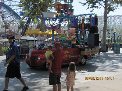 That night we saw World of colors. It was amazing! Cooper fell asleep but we had a great view and it was worth the wait! All these things of water shooting into the sky to project a movie on it. It was pretty cool.