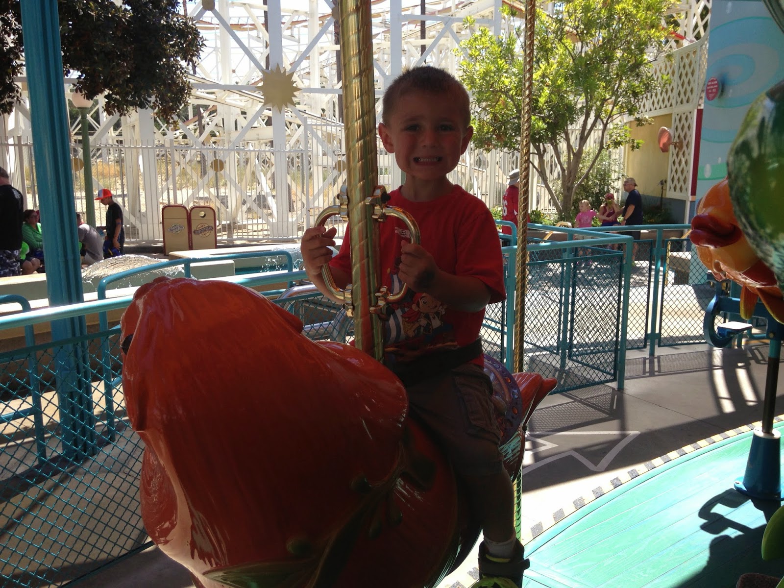It was seriously so hot the boys were cooling off any way they could. They started in the drinking fountain and then this nice lady was using her fan mister to cool them off. It was just so hot!!